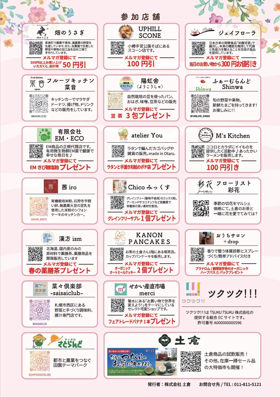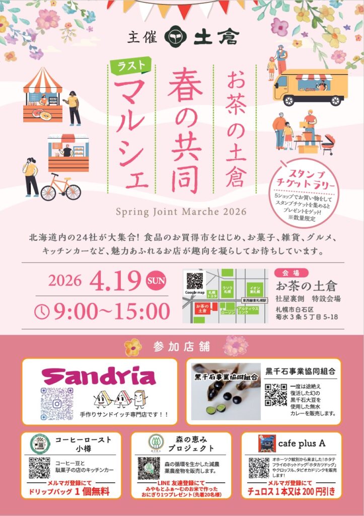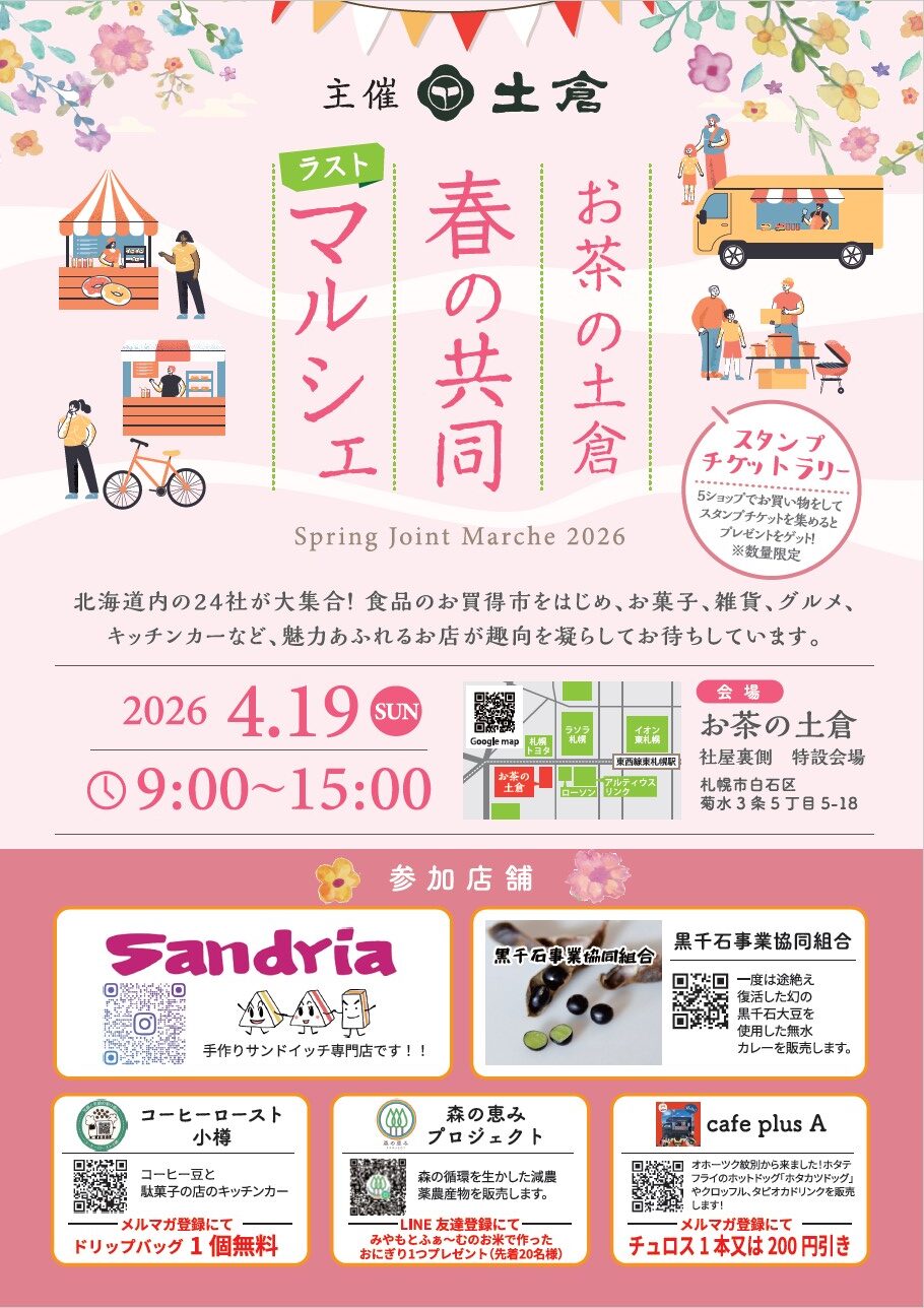 【開催】お茶の土倉 春マルシェ 26年4月19日 9:00~15:00 札幌市白石区 (東札幌駅より徒歩5分)